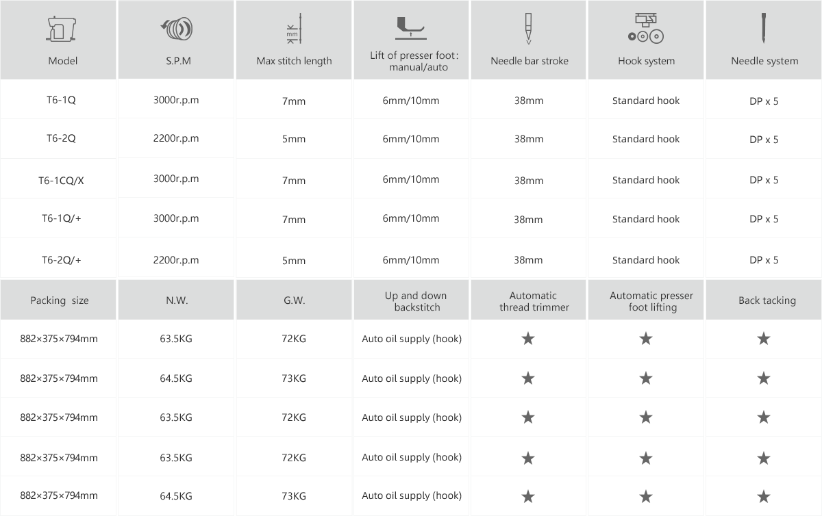 IOT ( T6-1Q、T6-2Q、 T6-1Q/+、T6-2Q/+ )、short thread trimming ( T6-1CQ/X )